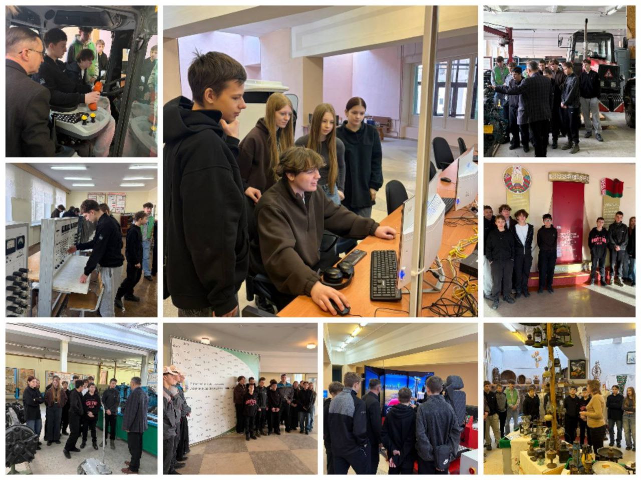 Сначала было знакомство с историей. Местный музей просто поразил ребят! Старые фотографии, макеты техники, личные вещи выпускников — всё это позволило почувствовать дух времени и понять, сколько поколений студентов прошло через это учебное заведение.