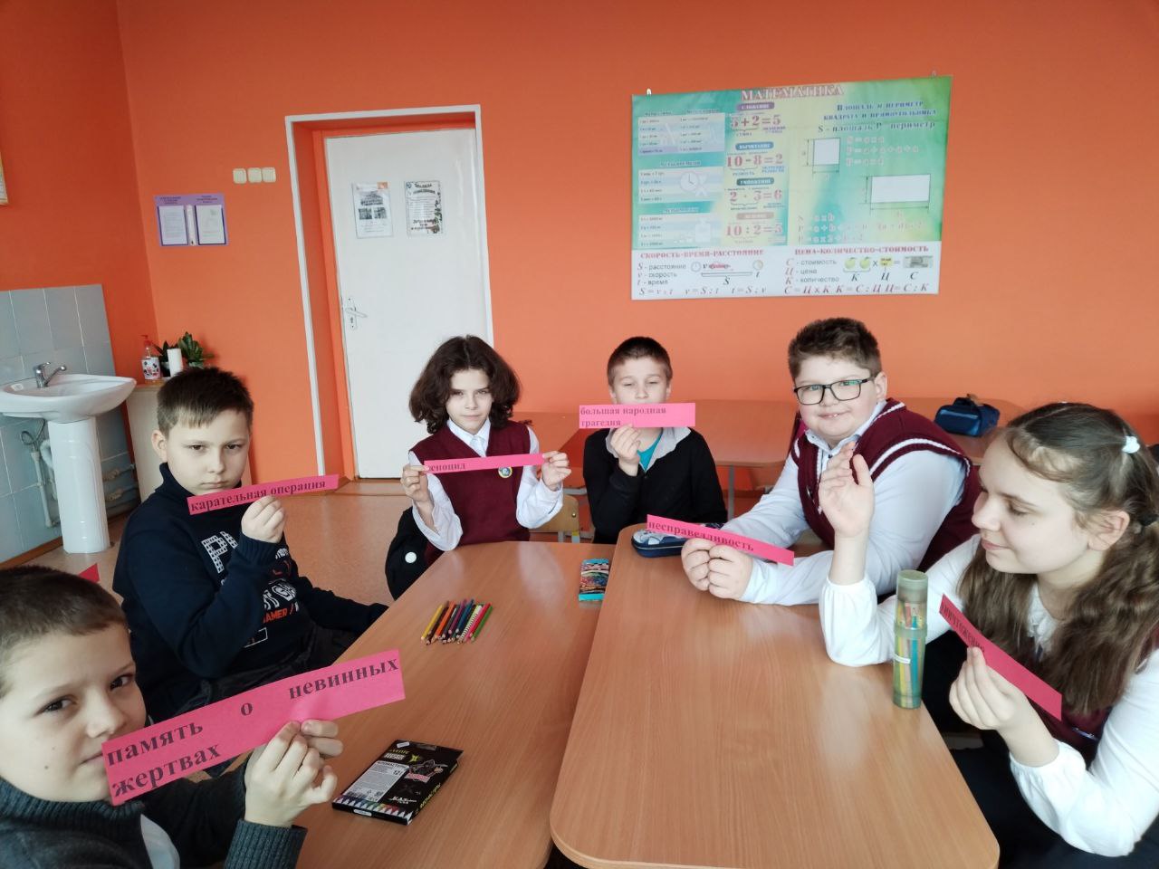В 3 «В» классе прошёл информационный час “Карательные операции” с использованием учебного пособия «Геноцид белорусского народа в годы Великой Отечественной войны». Ребята листали необычный устный журнал, посвященный памяти о простых людях — детях, мамах, бабушках и дедушках, чьи жизни унесла война. Страница «Мирная жизнь» рассказала о довоенной жизни, где люди растили детей и радовались солнцу. Страница «Большая беда» поведала о карателях, которые сжигали дома вместе с жителями. Вместе мы зажгли воображаемую свечу памяти, бережно неся ее в своих ладонях.