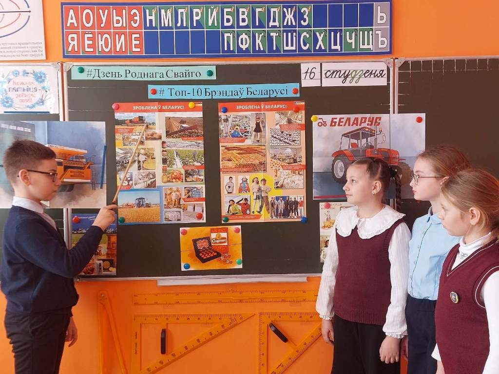16 студзеня вучні пачатковай школы нашай навучальнай установы далучыліся да праекта "Кожная пятніца - роднае, сваё". Падчас акцыі #Топ-10БрэндаўБеларусі хлопчыкі і дзяўчынкі пазнаёміліся з самымі вядомымі таварамі, якія зроблены ў нашай краіне, а таксама стварылі #Топ-10БрэндаўСлонімшчыны