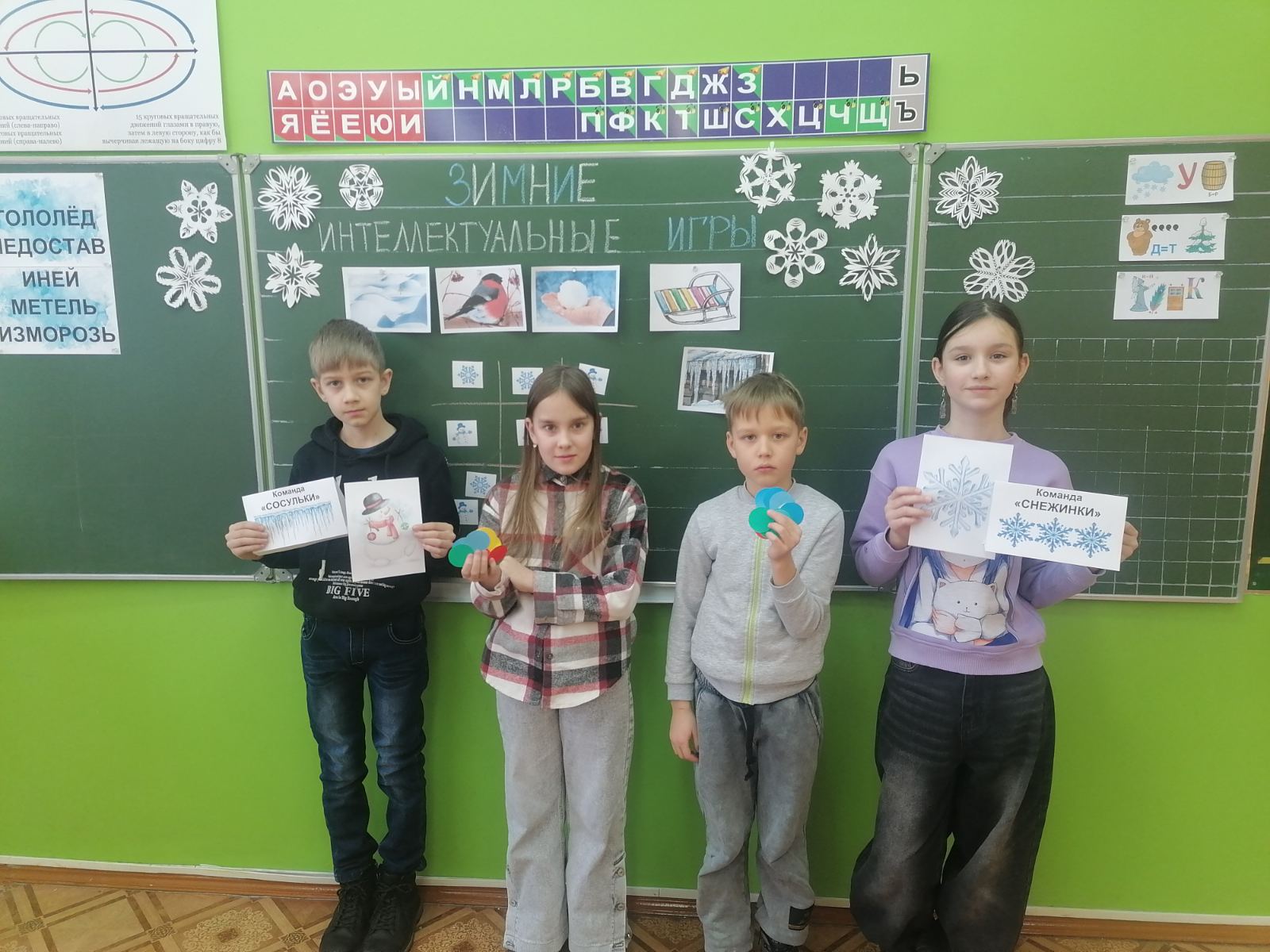 В субботу для учащихся были организованы зимние интеллектуальные игры. Команды "Сосульки" и "Снежинки" соревновались в конкурсах, связанных с волшебницей-зимой. Победила "почти дружба" (11:10).