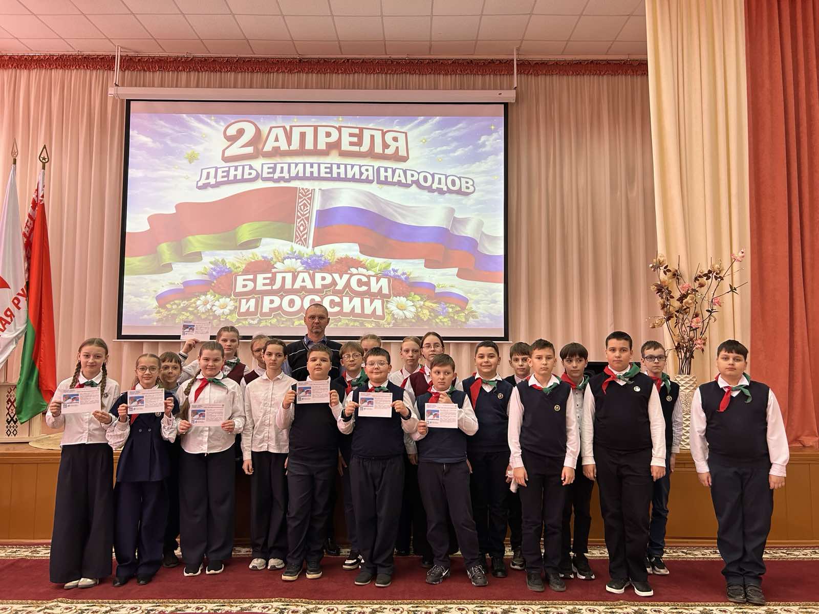 2 апреля 2026 года в ГУО "Средняя школа №3 г.Слонима " активисты ОО БРСМ приняли участие в мероприятии, посвящённом Дню единения народов Беларуси и России. Учащиеся активизировали свои знания об истории создания Союзного государства Беларуси и России, обсудили различные направления сотрудничества. Учащиеся доказали, что Союз Беларуси и России важен для народов наших стран, поскольку нас объединяет общая история.