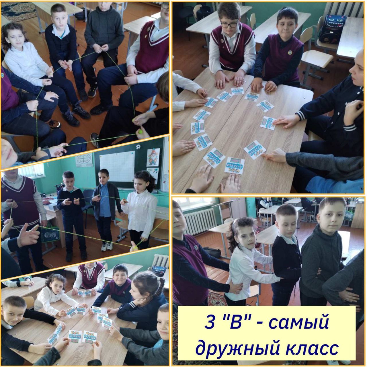 В 3 "В" классе прошел веселый  челлендж «Самый дружный класс», направленный на сплочение детского коллектива. Ребята выполняли игровые задания: превращались в одну большую «гусеницу», учились двигаться синхронно под музыку и повторять движения друг за другом. Кульминацией мероприятия стала игра «Паутинка»: с помощью волшебного клубка ниток дети связали себя невидимыми, но очень крепкими нитями дружбы. Все испытания требовали от юных участников внимания друг к другу, умения договариваться и действовать сообща, что у них блестяще получилось!