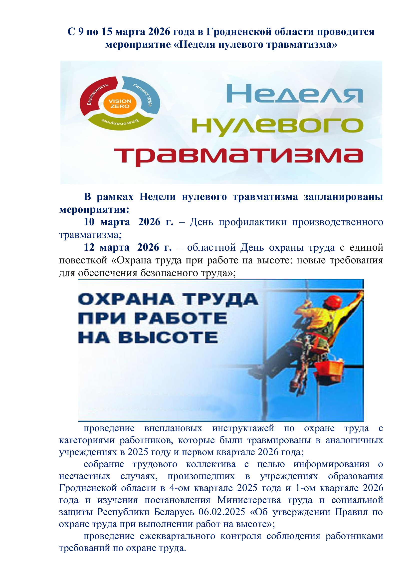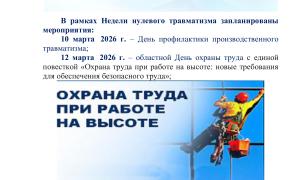 С 9 по 15 марта 2026 года в Гродненской области проводится мероприятие «Неделя нулевого травматизма»