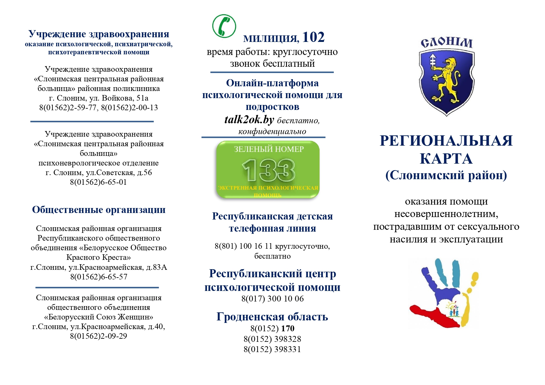 Региональная карта помощи пострадавшим от сексуального насилия или эксплуатации Слонимского района