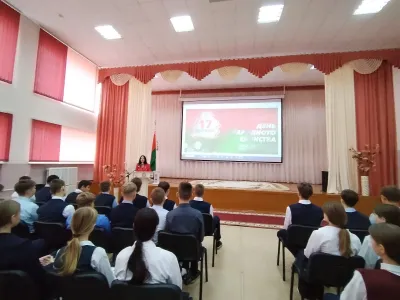 16 сентября в учреждении образования "Средняя школа № 3 г. Слонима" прошел Единый классный час для 8-11 классов, посвященный Дню народного единства. На классный час была приглашена член Гродненской коллегии адвокатов, адвокат Слонимской юридической консультации Жегздринь О.С. На Едином классном часу обсуждались вопросы, связанные с праздником, приводились исторические справки и примеры необходимости единения.