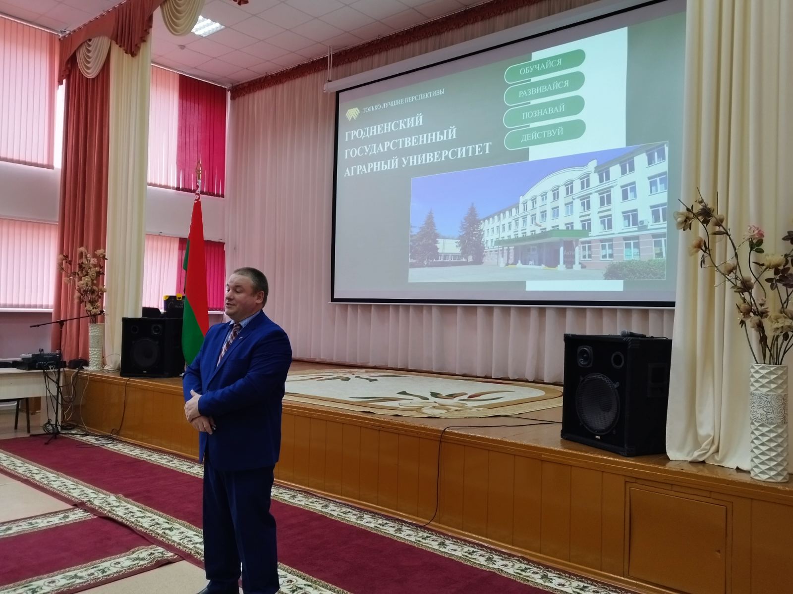 Для учащихся 10-11 классов прошла профориентационная встреча с представителем Гродненского аграрного университета Бобриком Иваном Евгеньевичем. В ходе беседы были затронуты вопросы вступительной компании 2026 года. Прошла реклама специальностей инженерно-технологического факультета.