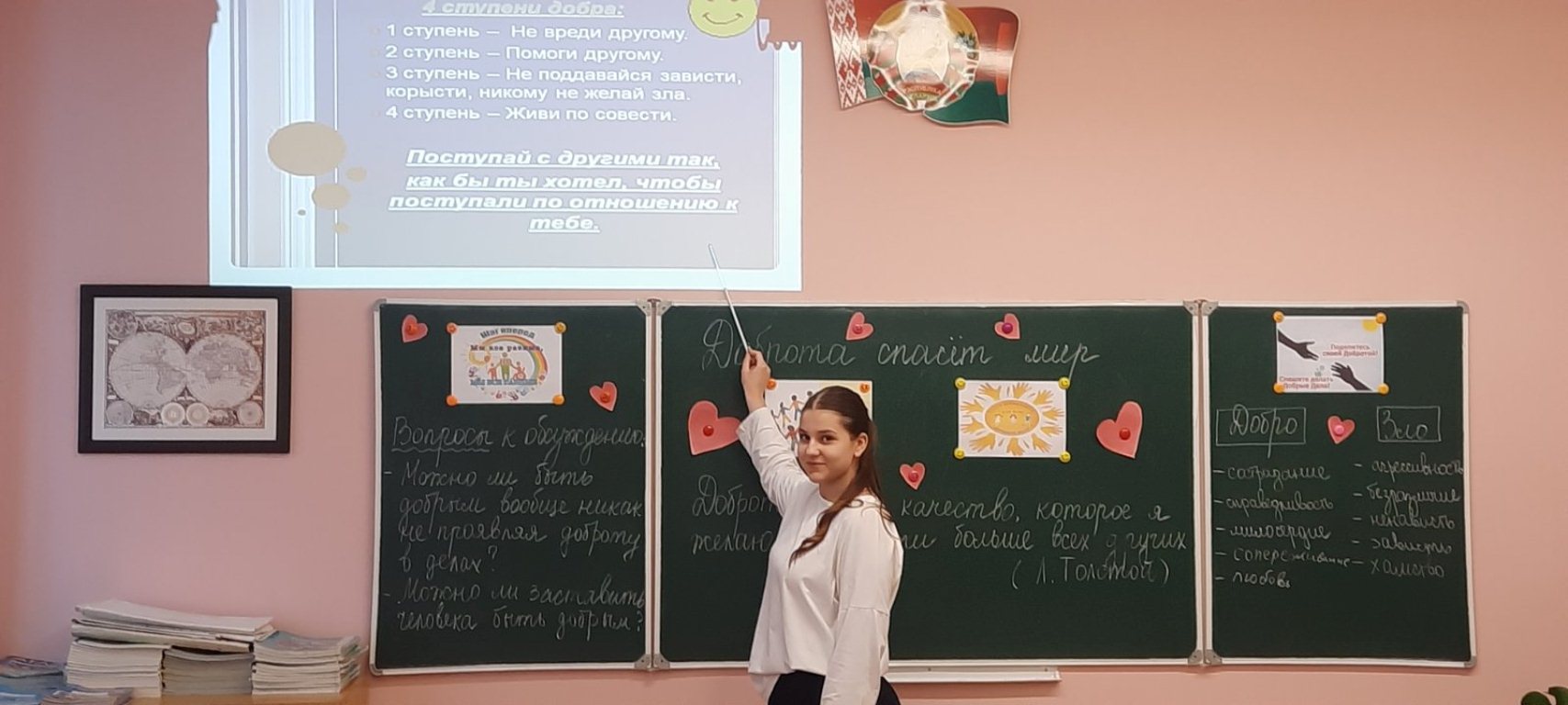 Классный час начался с обсуждения понятий «доброта», «сострадание» и «помощь». Учащиеся поделились своими мыслями о том, что для них значит доброта и пришли к выводу, что доброта – это не только приятные слова, но и действия, которые могут поддержать и помочь другим. Ребята делились своими примерами добрых поступков, которые они совершали или наблюдали в повседневной жизни. Это были истории о помощи пожилым людям, о том, как они поддерживали друзей в трудные времена, и даже о маленьких жестах, таких как улыбка или доброе слово. Всё это создало атмосферу доверия и понимания.