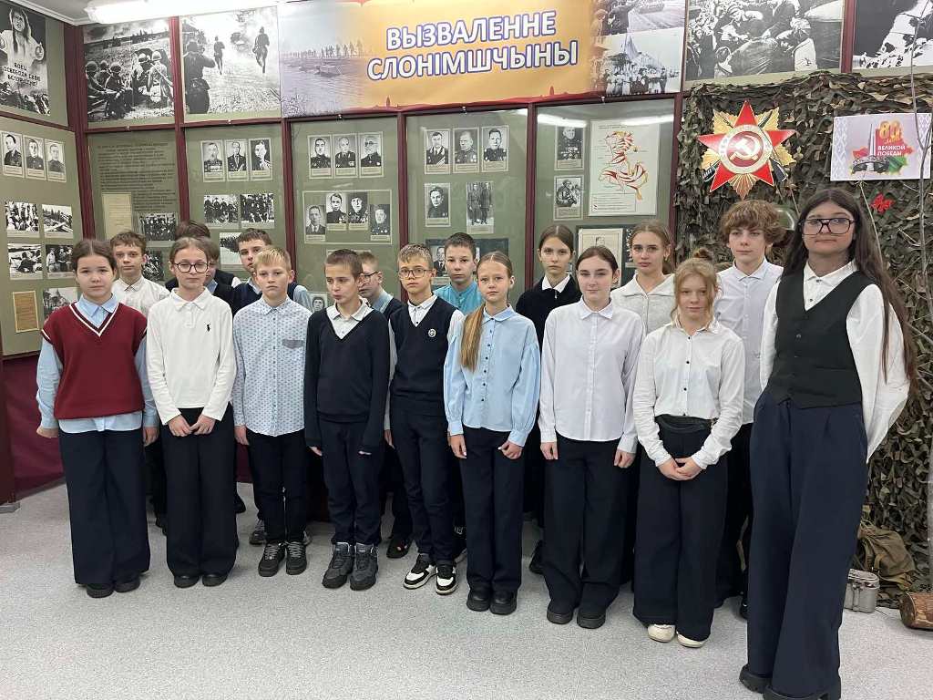 11 декабря 2025 г. учащиеся 7 классов посетили учреждение культуры «Слонимский районный краеведческий музей имени И.И. Стабровского» и экспозицию «Геноцид белорусского народа в годы Великой Отечественной войны». В рамках мероприятия был организован просмотр исторических фотографий и видеороликов, которые отражают страдания жителей Беларуси во время войны. Дети ощутили на себе боль и страдания, которые пережили их предки. Такие мероприятия помогают сохранить память о героическом прошлом страны и воинской доблести наших предков.
