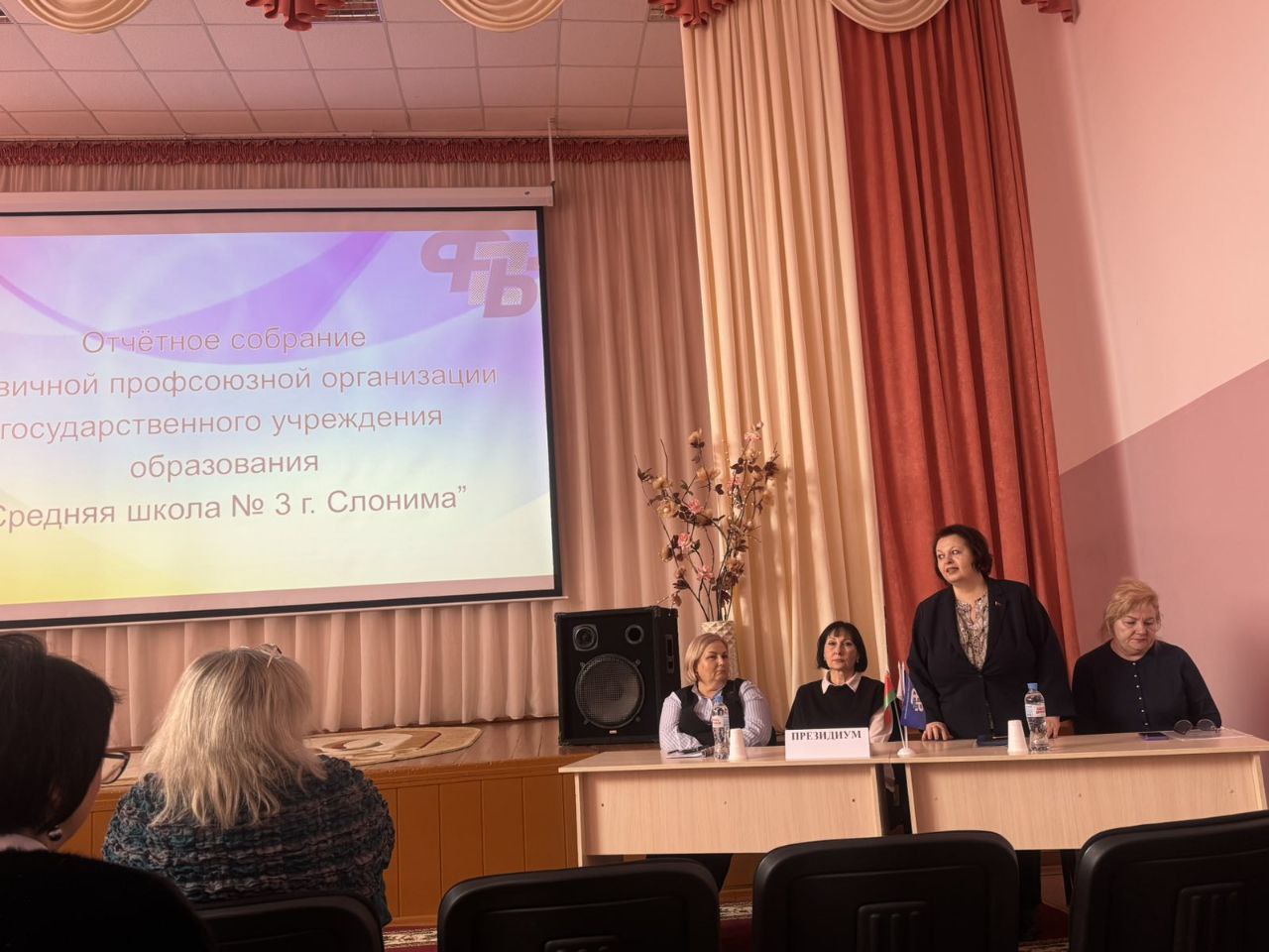 19 февраля в первичной профсоюзной организации ГУО «Средняя школа № 3 г. Слонима» при участии председателя районной организации Натальи Николаевны Фидрик прошло отчетное профсоюзное собрание. Члены профсоюза заслушали информацию о работе профкома и ревизионной комиссии за 2025 год. Наталья Николаевна довела до присутствующих информацию о важных достижениях и наметила проблемные вопросы, требующие решения в будущем.