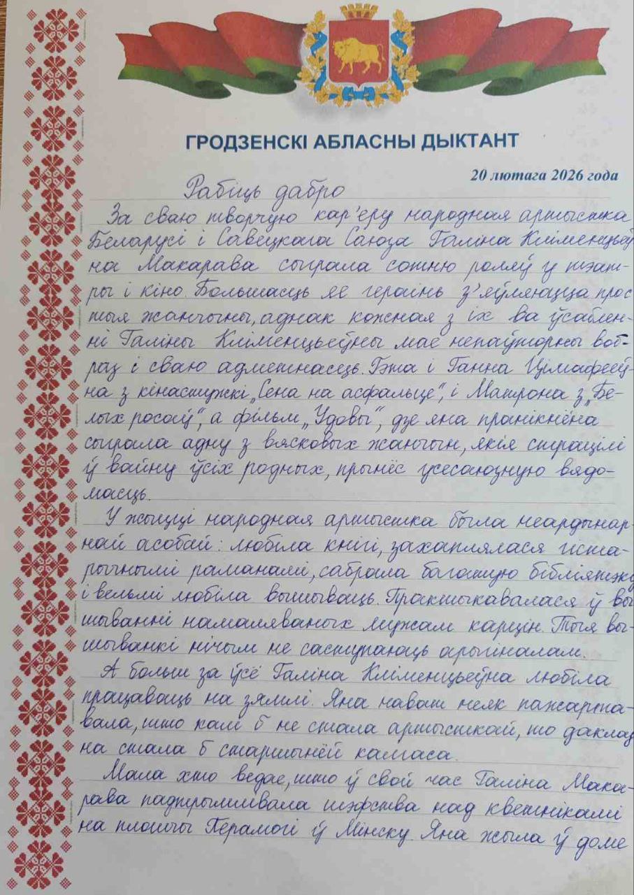 20 лютага вучні і настаўнікі ДУА " Сярэдняя школа N3 г. Слоніма" прынялі ўдзел у напісанні Гродзенскага абласнога дыктанта. Гэта стала ўжо добрай традыцыяй. Дыктант прысвечаны народнай артыстцы Беларусі і Савецкага Саюза Галіне Кліменцьеўне Макаравай. Мэтай дыктанта з'яўляецца папулярызацыя беларускай мовы, фарміраванне грамадзянскасці, нацыянальнага вобраза жанчыны, свядомага стаўлення да мовы як нацыянальнай культурнай каштоўнасці.