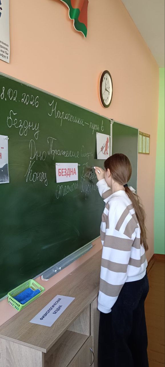 Ребята не просто слушали лекцию о вреде запрещенных веществ, но и сами стали активными участниками дискуссии. Вместе с педагогом Шевченко Л.А. старшеклассники развенчали миф о «легких» наркотиках, обсудили три круга разрушения личности (физический, психологический и социальный) и узнали о тяжелых юридических последствиях, предусмотренных Уголовным Кодексом Республики Беларусь.