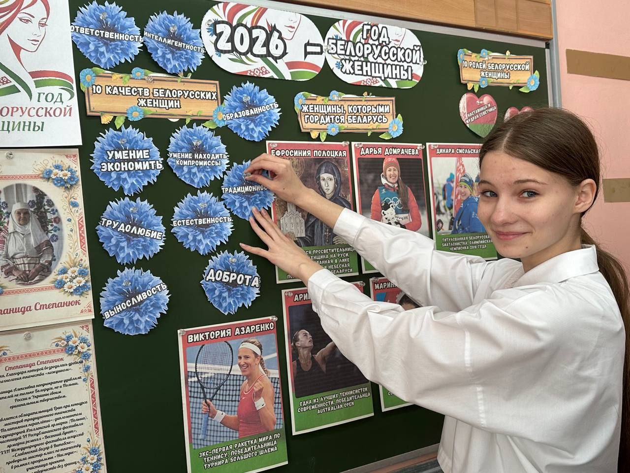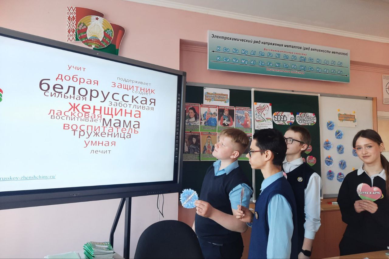 5 марта 2026 для учащихся 7"А", 8"Б", 10 "А" состоялся единый урок «Белорусская женщина - символ силы и вдохновения».
