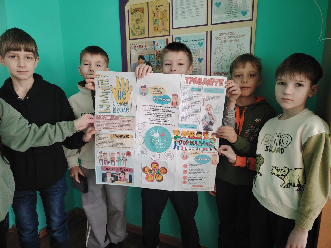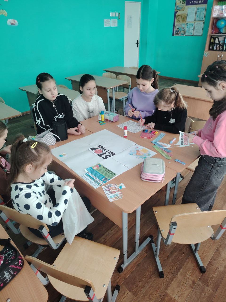 В рамках районной акции "Слышать, видеть, защищать" ребята 3-4-х классов нашей школы собрались в субботу, 7 марта на мероприятие, направленное на профилактику насилия и буллинга в детской среде. Ребята обсудили мультфильм "Про Миру и Гошу" из серии "Просто о важном", разобрались, что такое буллинг и кибербуллинг, сделали яркие плакаты, призывающие остановить травлю и насилие в школе, быть дружными и внимательным друг к другу.