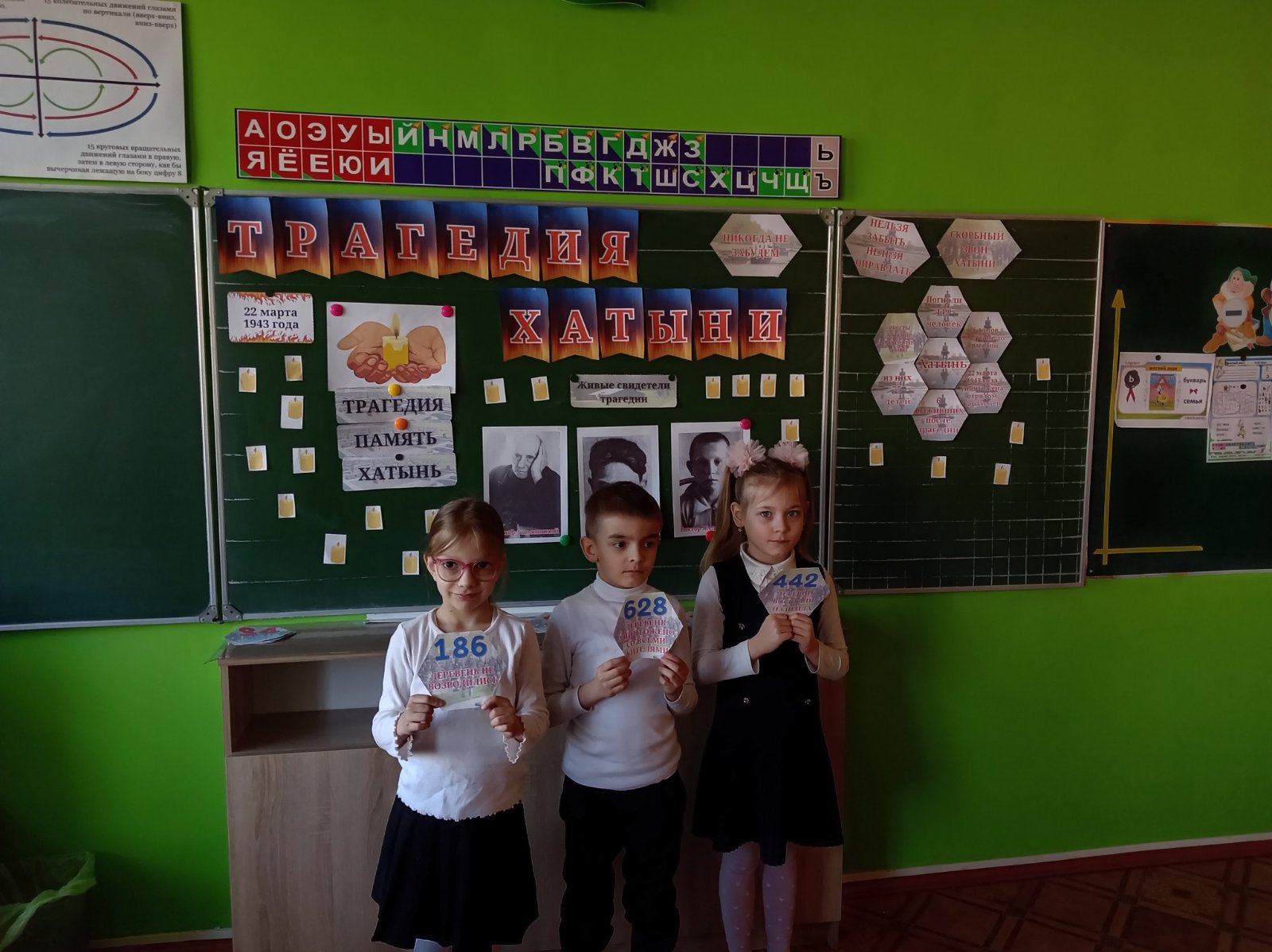 Посмотрев видеофильм, ребята узнали о тех страшных событиях и о «сёстрах Хатыни» – сожжённых деревнях, разделивших судьбу Хатыни в годы Великой Отечественной войны. В конце урока класс замер в минуте молчания, сохраняя в сердцах память о погибших.