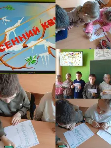 В рамках шестого школьного дня среди учащихся 3-4 классов 21 марта прошел весенний квиз под девизом "Хорошее настроение - залог успеха". Квиз - это игра, которая с каждым днём становится популярнее в мире. Это командное интеллектуальное соревнование, участники которого отвечают последовательно на поставленные вопросы в течение нескольких раундов. Ребята показали свои знания, быстроту мысли, логику мышления в таких раундах: " Все обо всем", "Верю! Не верю!", "Ребусы", "Литературный", "Математический". И третьеклассники, и учащиеся четвёртых классов были на высоте. В конце игры их ждал сюрприз.