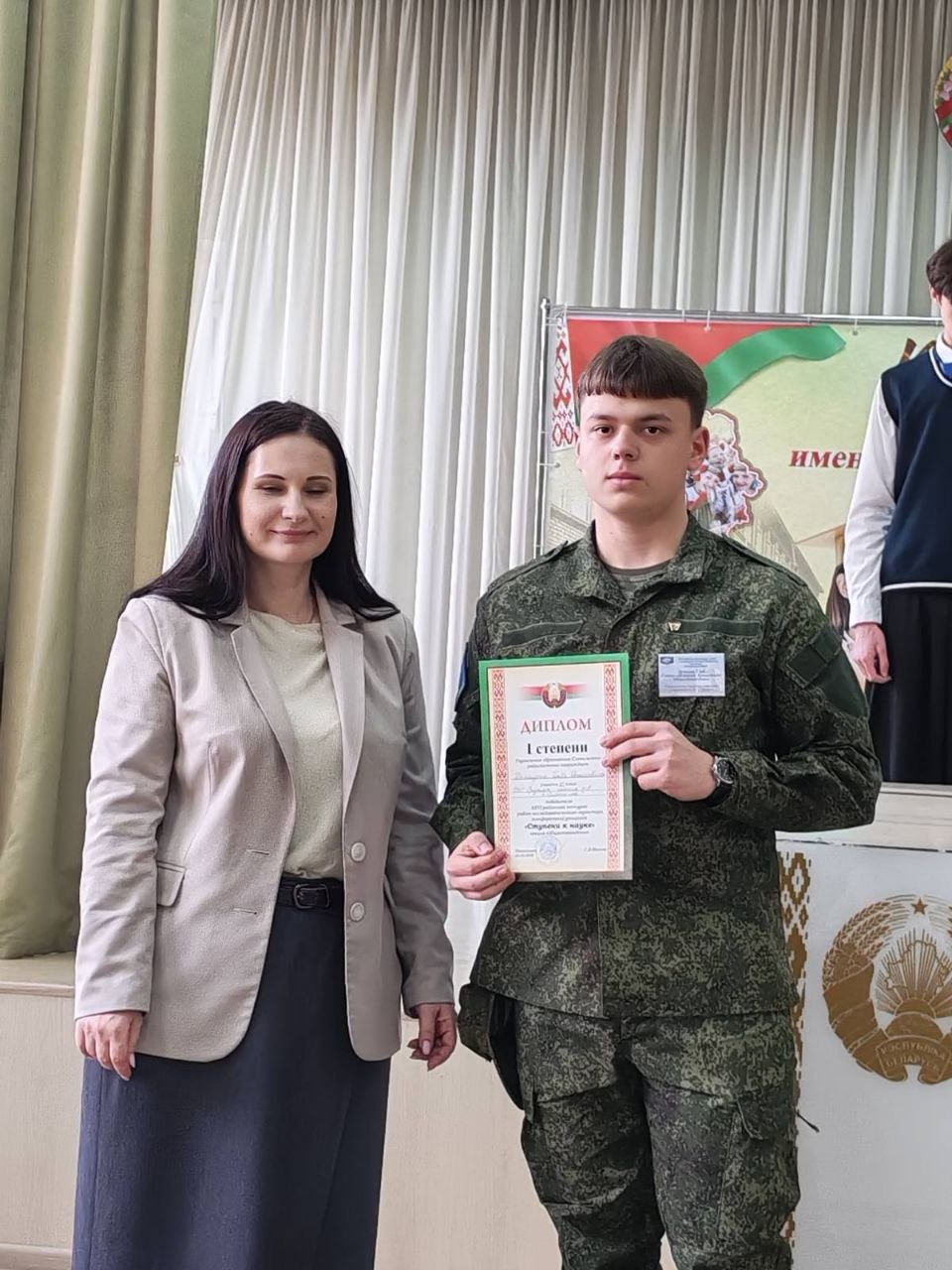 Демидка Глеба, учащегося 10 "Б" класса и Вишевскую Т. В. с дипломом 1 степени в секции "Обществоведение" и учащихся 3 "Б" класса и Грацкевич Л. В. с дипломом 3 степени в секции "Мир маленьких открытий" !!!