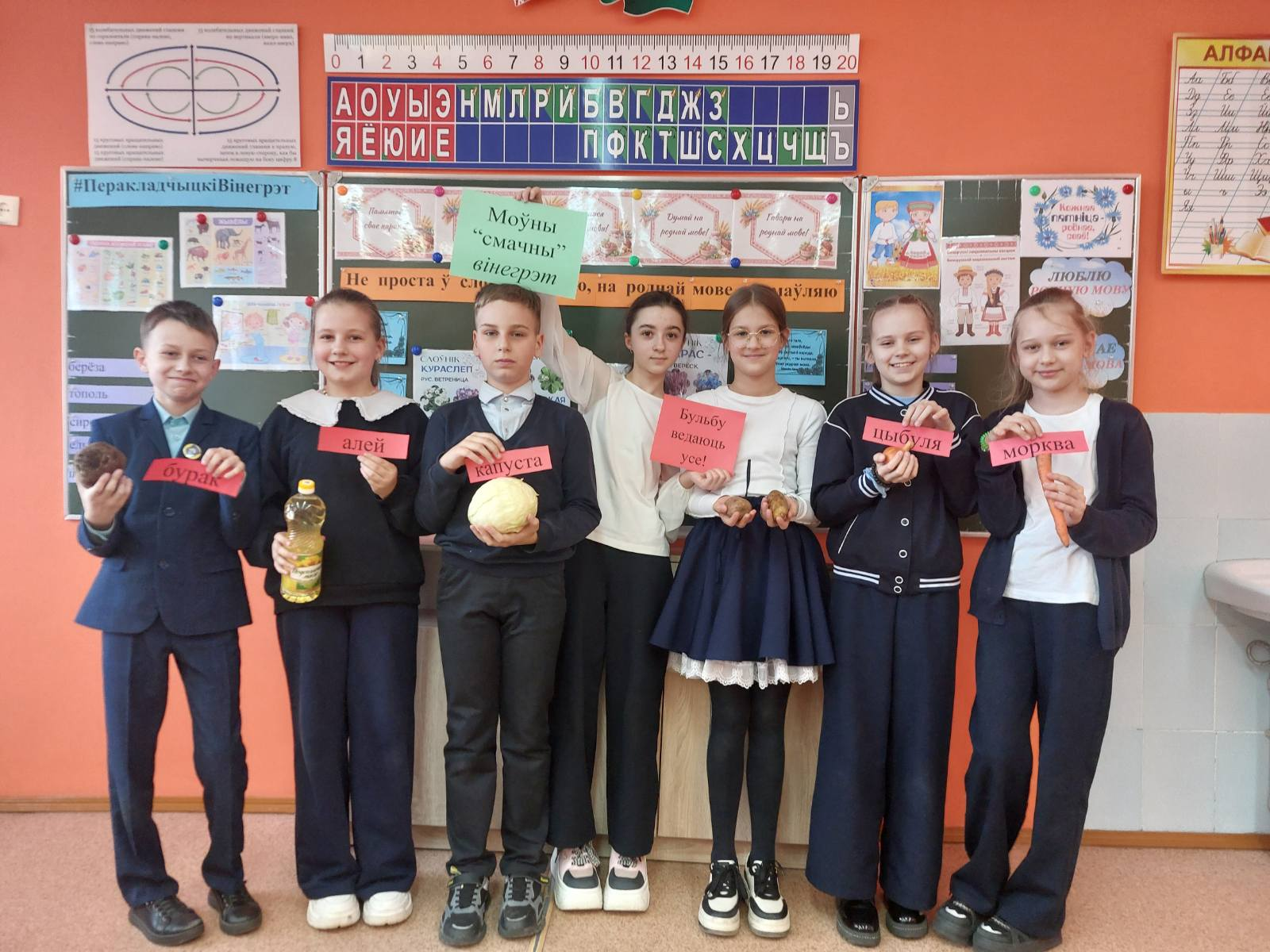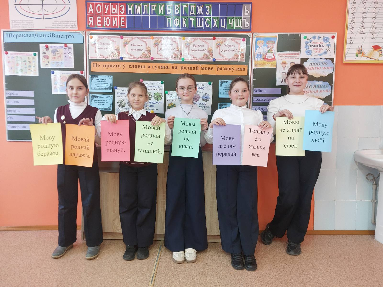 11 красавіка ў рамках рэспубліканскага праекта "Кожная пятніца - роднае, сваё" ў 4 "А" класе прайшла гульня "Не проста ў словы я гуляю, на роднай мове размаўляю!". Хлопчыкі і дзяўчынкі ператварыліся ў спецыялістаў, якія павінны былі перакладаць словы на беларускую мову. Вучні рашалі крыжаванкі, рэбусы, суадносілі словы і ілюстрацыі, нават прыгатавалі "моўны" вінегрэт. Чацвёртакласнікі пашырылі свае веды аб роднай мове і ўпэўніліся, што беларускія словы самыя звонкія і мілагучныя, непаўторныя і загадкавыя.