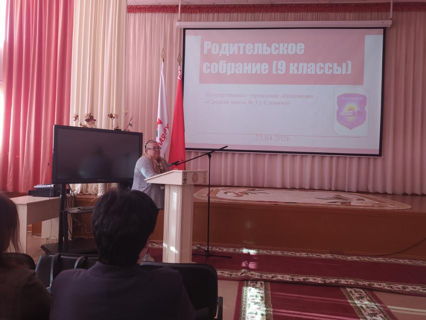 23.04.2026 в учреждении образования прошло родительское собрание «Об организации подготовки и проведении итоговой аттестации учащихся, выпускных экзаменов по завершении обучения и воспитания на II ступени общего среднего образования».